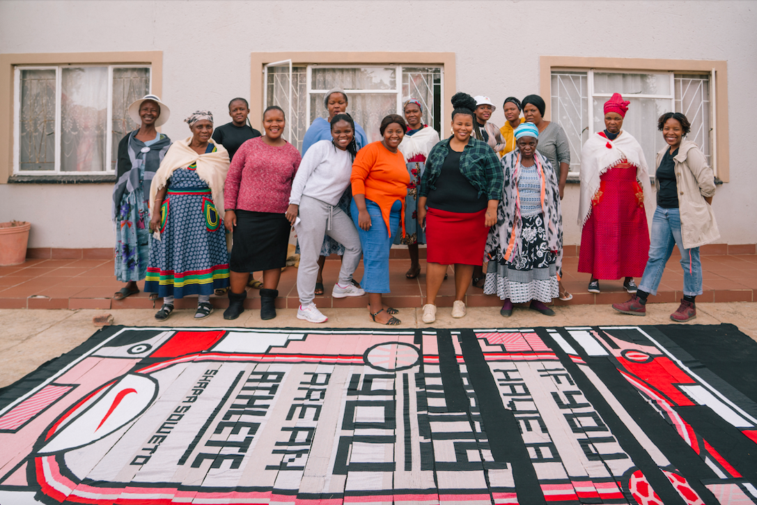 In 2019 we were approached by Futurajoburg for one of our most challenging pieces yet. We were commissioned to make a 4.2 m x 2.47m beaded tapestry for Nike (the design was created by Futura), for their newly branded facility called Shapa Soweto. Shapa Soweto is a multipurpose sports facility that has been created to encourage communities within Soweto and surrounding areas to participate in a variety of sports and other creative activities.